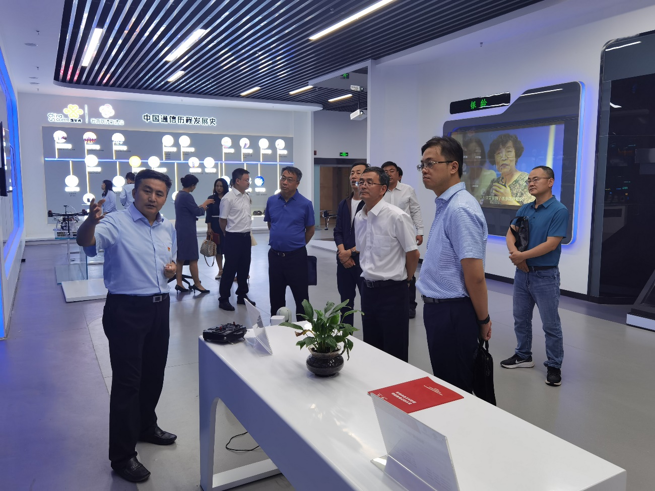 签约仪式前云南联通党委委员、常务副总经理温涛带领潘副校长一行参观了5G+应用综合展览厅,全面讲解了“中国联通5G应用创新联盟”产业链,详细介绍了5G+无人机、5G+智慧物流、5G+智慧农林、5G+防疫产品等应用场景和平台建设情况。随后大家参观了云南联通党建文化馆,一起重温了党的百年光辉历史,共同回顾了云南联通27年来的发展道路。