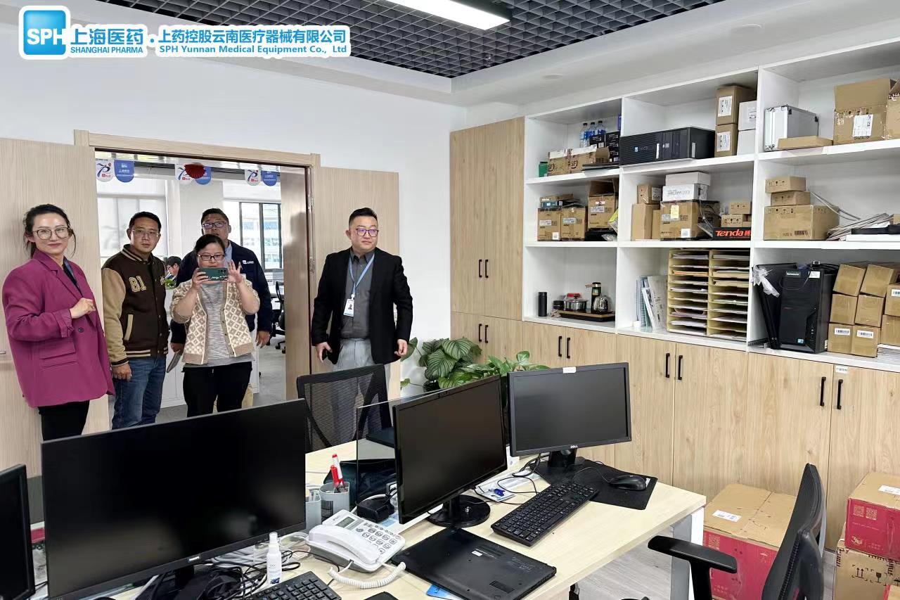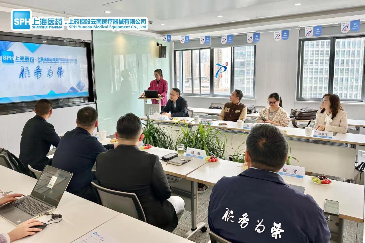 生物医学工程系教师马磊、汤守国、徐家萍、熊馨到上药云南器械参观交流。上药云南器械医学工程部经理杨李、医学工程部销售经理李东苍、用户服务部经理熊济、行政人事部经理赵燕婷;广东上药桑尼克医疗科技有限公司云南省区经理张雄参加交流会,会议由医学工程部经理杨李主持。