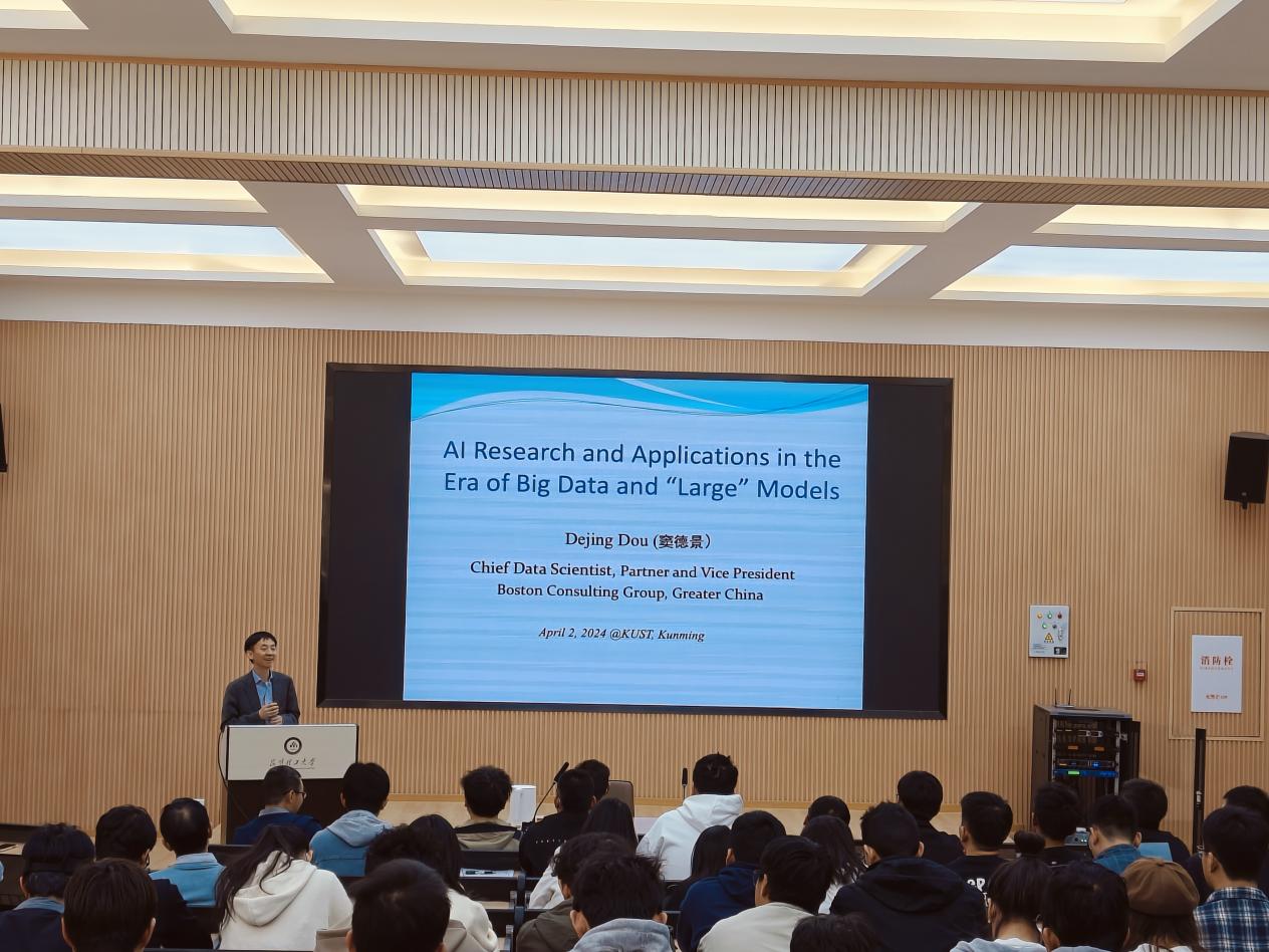 “致远大讲堂”邀请波士顿咨询合伙人、副总裁窦得景教授为昆工师生作关于“大数据和大模型时代的AI研究和应用”学术讲座。本次讲座在计算机重点实验室100报告厅进行,独播库