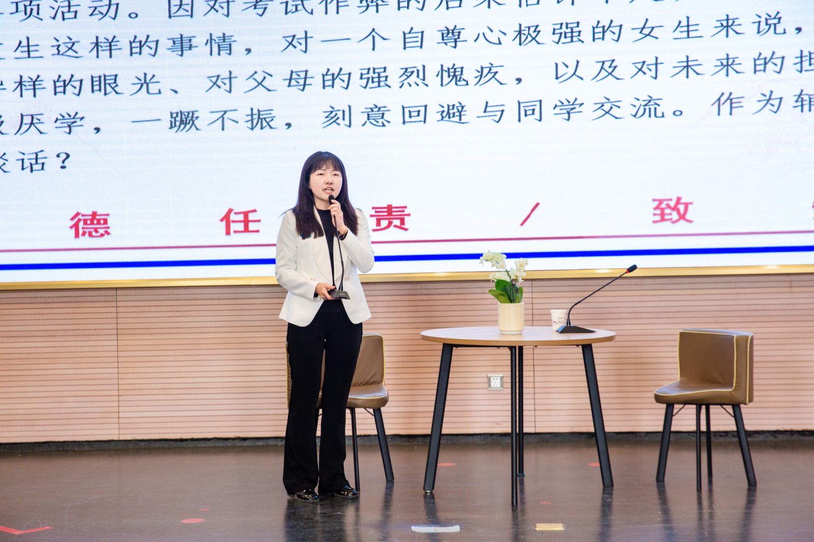 辅导员刘冰、万松脱颖而出进入下一阶段比赛。第二阶段的比赛分为谈心谈话、案例研讨两个环节。刘冰老师以她敏锐的洞察力和扎实的专业素养在谈心谈话环节中与学生耐心细致地沟通,准确捕捉学生内心需求与困惑,用温暖的话语和专业的建议,有效疏导学生压力。万松老师则在案例研讨环节中大放异彩,她凭借丰富的实践经验和独到的见解,对学生工作案例进行了深入剖析,提出了切实可行的解决方案,展现了其在学生工作领域的深厚功底和卓越能力。