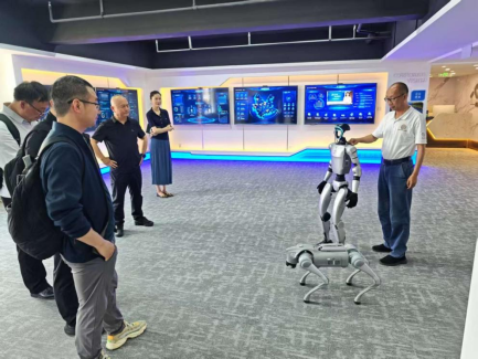 在云南天成机器人及数字经济产业展厅内,学院班子成员观看了人形机器人“天天”和四足机器人“成成”的实操表演,并与机器人进行了互动体验。在李湜董事长的介绍下,详细了解了云南天成在智能机器人领域的运用研发、产业数字化综合服务平台建设的创新成果以及推动产业数字化转型的实践与规划。