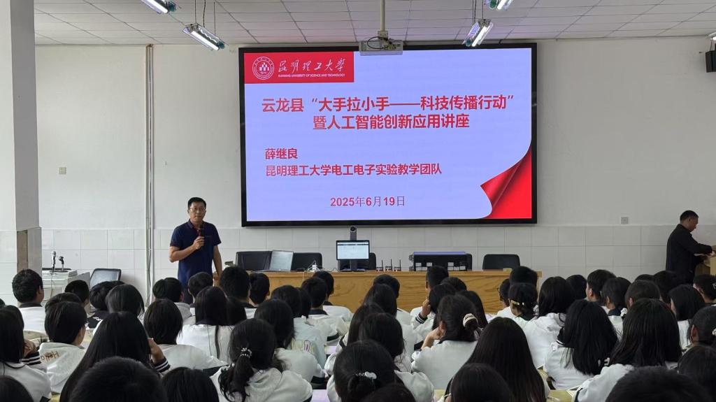 实验中心薛继良老师受大理州云龙县科协邀请为云龙县第二中学和漕涧镇初级中学开展2025年云龙县“大手拉小手——科技传播行动”科普专题系列讲座,将前沿科技知识送进基层校园,赋能偏远山区青少年科学素养提升。