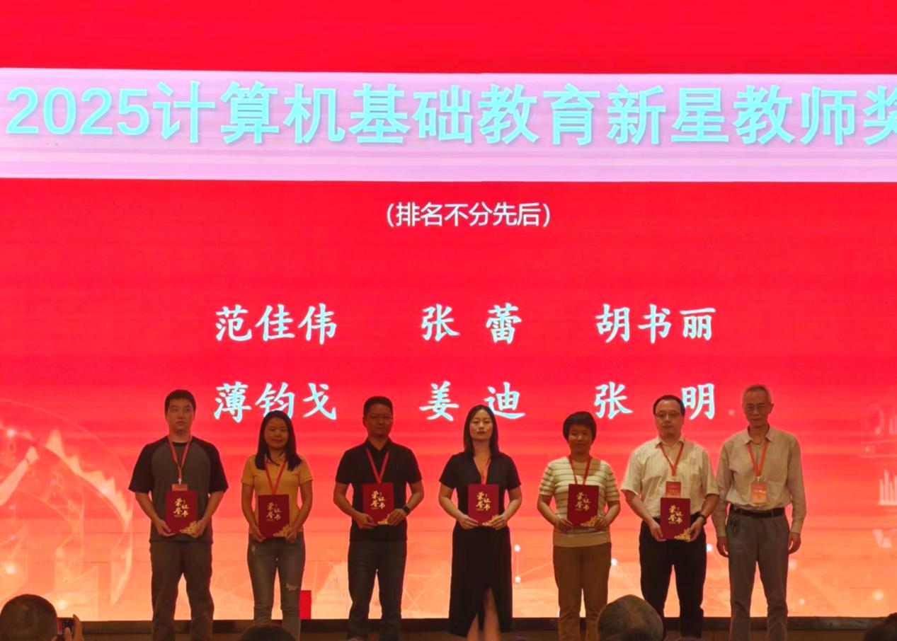 计算机基础教学中心姜迪老师受邀参会,并凭借在计算机基础教育领域的突出贡献,荣获“全国高等院校计算机基础教育研究会2025基础教育新星教师奖”,于大会现场接受表彰。