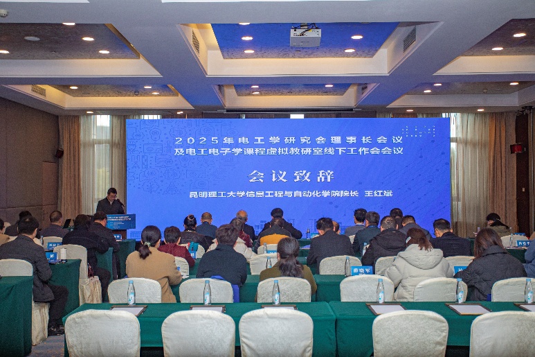 院长王红斌教授致欢迎辞,介绍了学校及学院的发展历程与办学成就,强调电工学作为工科教育基石的重要作用,并期待以虚拟教研室为平台,推动课程创新、资源共享与教师协同发展。