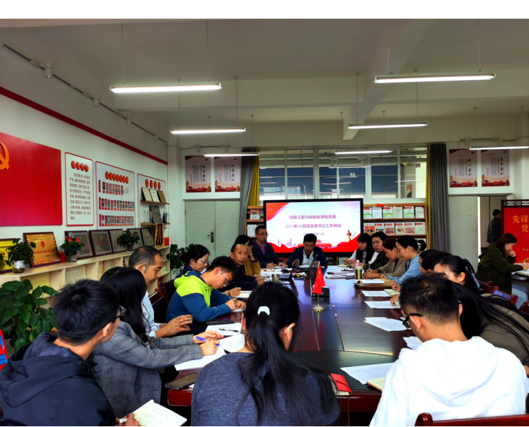 2021年10月党支部书记工作例会在信自楼235顺利召开。出席本次会议的有学院党委书记齐毅同志、学院正处级组织员黄荣军同志以及学院各党支部书记。会议由学院党委书记齐毅同志主持。