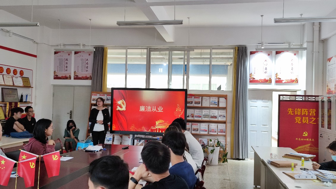 最后,计算机学生第二党支部书记马金晶同志组织同志们共同观看文明离校宣传视频,开展了毕业生谈心、廉洁就业专题教育,引导毕业的党员同志坚实走稳踏入社会的第一步,为其他同志打好预防针。