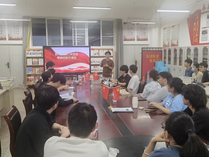 在此次活动中,研究生第三党支部的孙资钦同志为我们讲解了考研的相关事宜,从考研的前期准备、复习内容、考试技巧等方面进行了详细的介绍,为本支部的同志们提供了许多方法和建议。