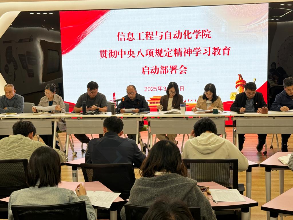 在信自126召开党委扩大会,对学院开展深入贯彻中央八项规定精神学习教育进行部署,学院党委书记齐毅主持会议并讲话,学院党政班子成员、党支部书记和各科室负责人参加了会议。