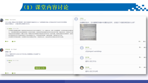 课程逐渐形成了以学习通和雨课堂为平台的课前、课中和课后的联动机制,课后学生可以通过多种平台和方式进行师生问答和生生讨论,进一步深化理解课堂内容,教师也参与到学生的课题讨论和答疑中,但一般只是给出方向性信息而非直接给出答案。