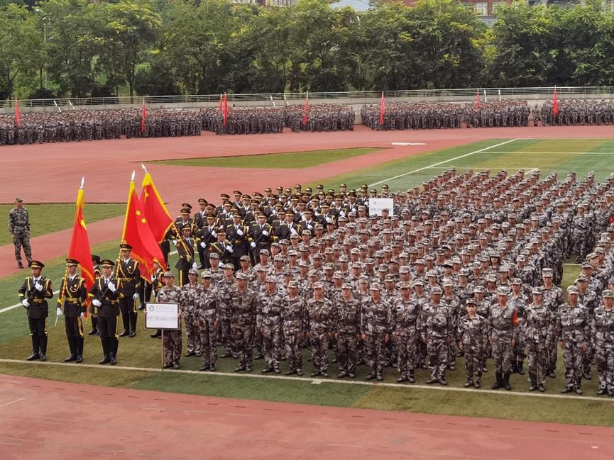 606名本科新生经过14天快节奏、高强度的军事技能训练后,以威武的军姿、崭新的风貌、昂扬进取的精神意志汇报军训成果,展示了信自学子的自信风采。