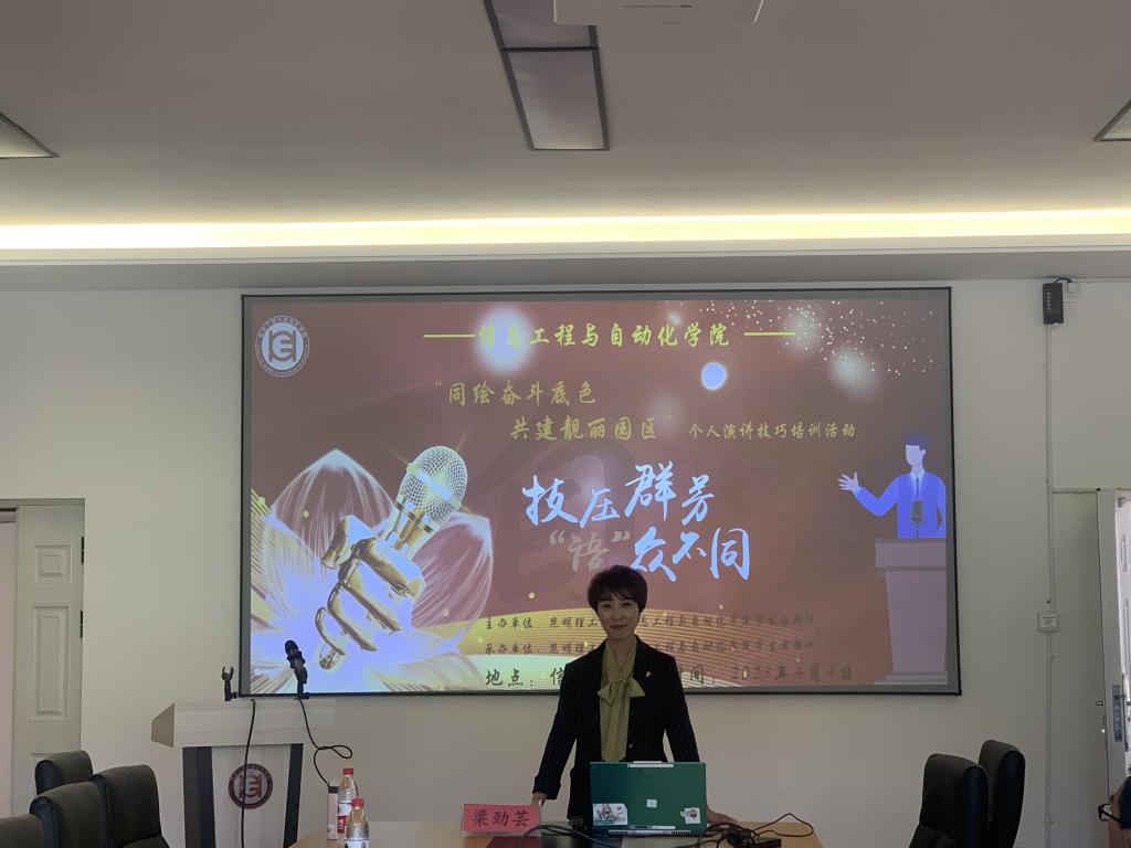 自强社与通信学生第一党支部共同举办 “同绘奋斗底色,共建靓丽园区”系列活动之“靓丽个人演讲技巧主题讲座。信自学院毕业班学生及通信学生第一党支部党员共50余人参加培训。