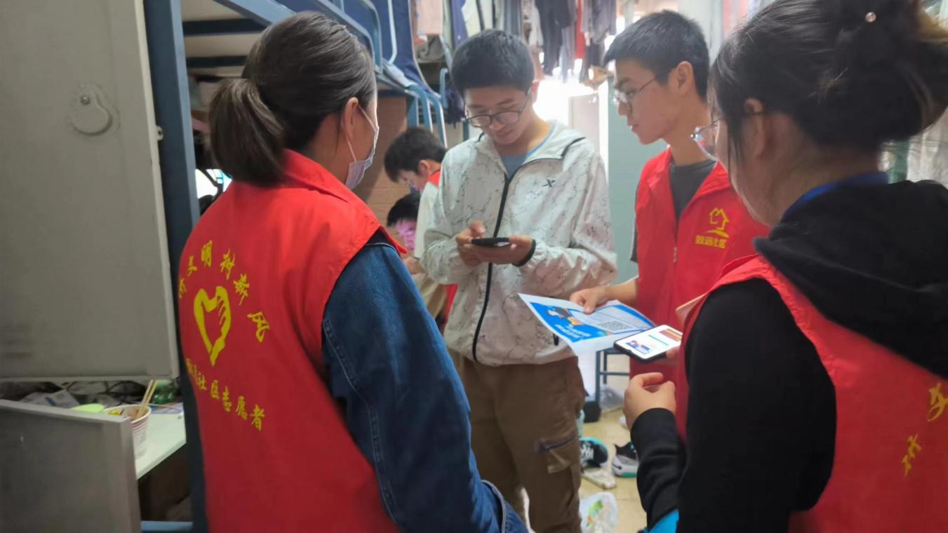 2023年10月19日,为进一步加强在校本科学生防范网络电信诈骗意识,减少网络电信诈骗危害,独播库 、人工智能产业学院联合吴家营派出所、致远社区开展了反诈宣传进社区活动活动。本次活动中,派出所民警、社区工作人员、学院辅导员、班级学生干部走进学生宿舍宣传反诈知识并指导学生关注“金钟罩”公众号及下载使用国家反诈中心APP。