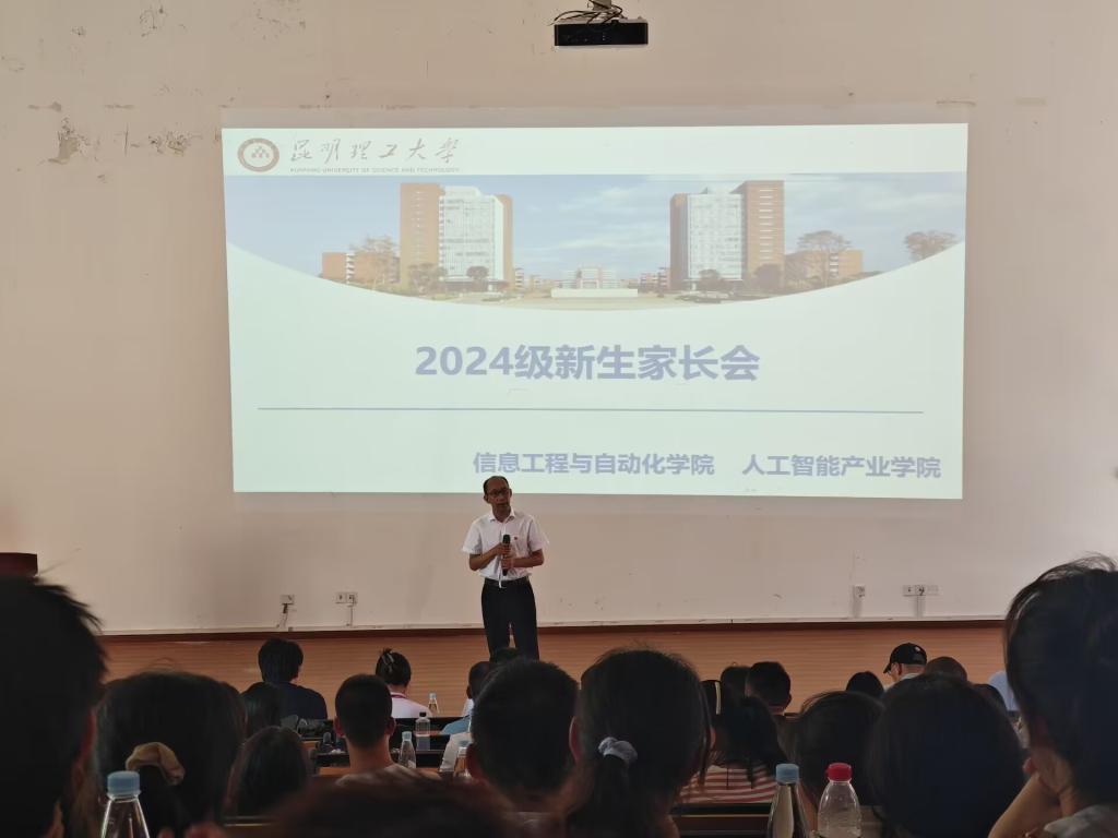 (人工智能产业学院)在信自100报告厅分两个批次召开2024级本科新生家长会。学院党委书记齐毅、学院院长王红斌、分管学生工作的负责人、各系主任、2024级新生班主任、辅导员及2024级新生家长共计500余人参加了家长会。