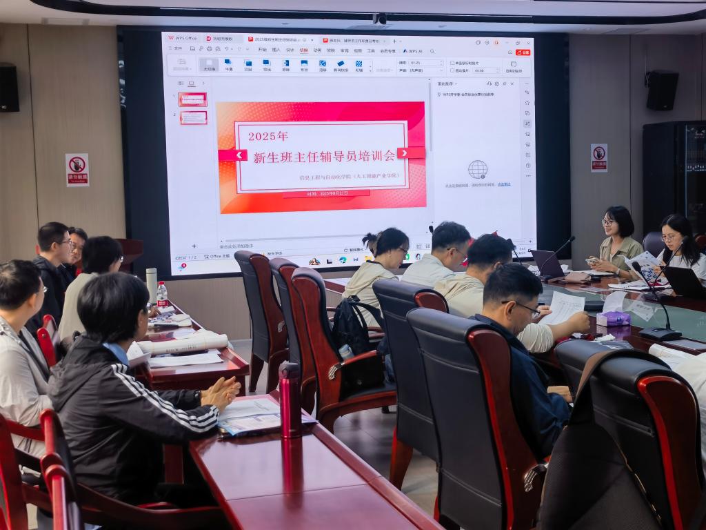 (产业学院)在信自212会议室召开2025级本科新生班主任辅导员培训会,学院党委副书记周鹭、党委副书记郑婷婷、2025级全体本科新生班主任及辅导员、学生专项工作负责人参加会议。