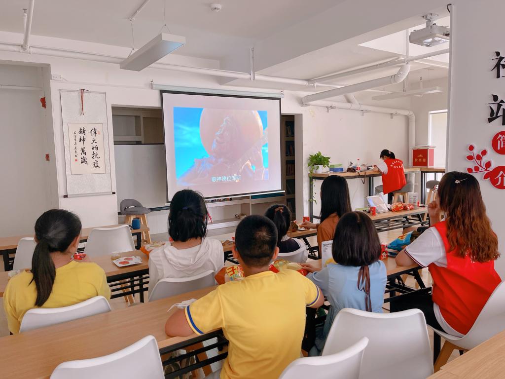 下午15点,志愿者带领小朋友们一起观看了影片《寻梦环游记》。该影片主要讲述男孩米格立志成为音乐家,但被家族所反对,他于亡灵之夜跑入歌神祭堂时偶然滑入“亡灵世界”,最终化解家族对音乐芥蒂并实现梦想的冒险故事。观影结束后,志愿者与小朋友们对电影内容展开了互动,小朋友们就自己的梦想和家庭发生矛盾的时候应该如何选择、什么才是正确的生死观等问题纷纷表达了自己的看法。