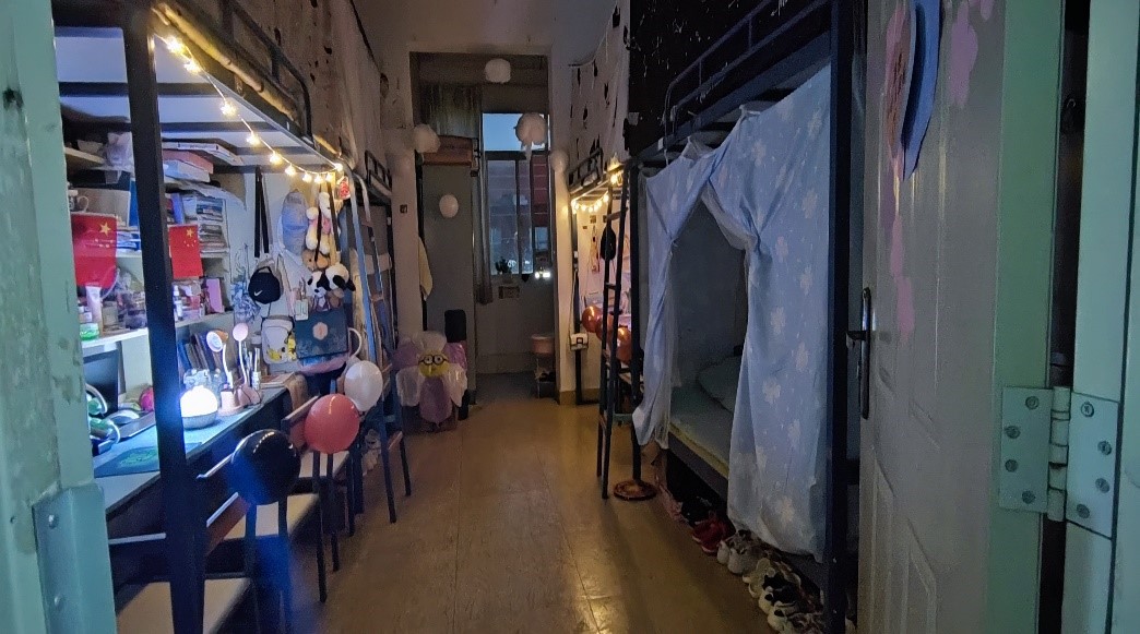 在学生住宿园区内开展“欢庆二十大,一屋荟萃文化百观”宿舍装饰大赛。