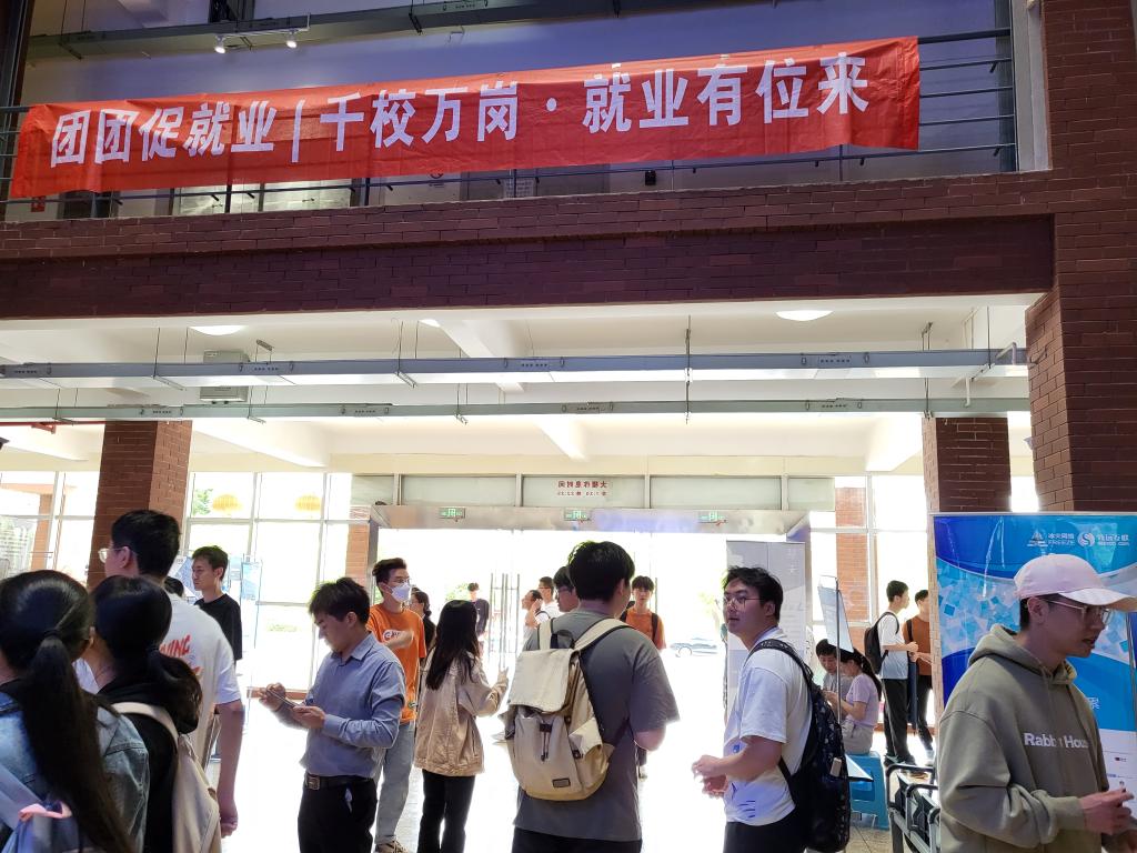 在信自楼一楼大厅组织举办团团促就业|千校万岗·就业有位来企业专场招聘会。