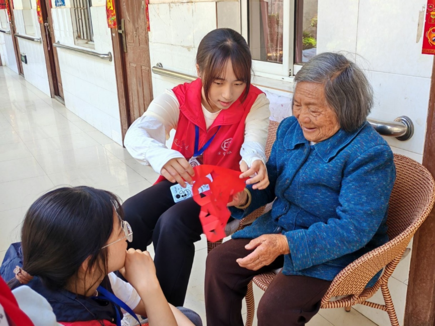活动中,志愿者们与老人深入交谈,了解他们在养老院中的生活状况和身体状况,并表达了深切的关心与关爱。交流过后,志愿者们通过开展剪纸活动,向老人们介绍中华传统文化剪纸的历史和文化背景,并与老人们一起动手制作了一幅幅精美的剪纸作品。这种互动不仅拉近了志愿者们与老人之间的距离,也让老人们感受到了来自社会的温暖与关爱。