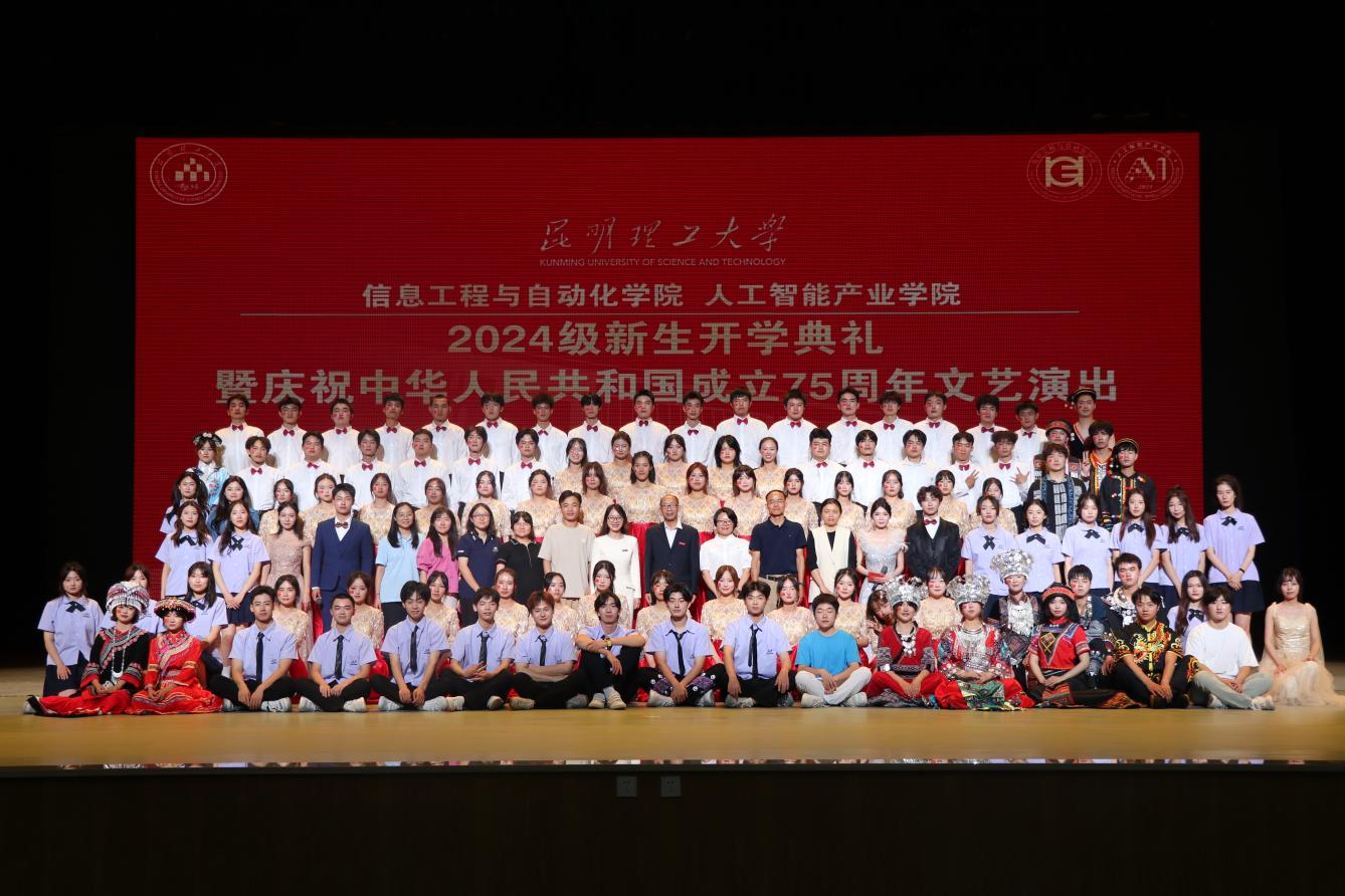 (人工智能产业学院)2024级新生开学典礼暨庆祝中华人民共和国成立75周年文艺演出在呈贡校区红土会堂举办。学院党政主要负责人,学院2024级全体新生和教师共计1200余人参加活动。