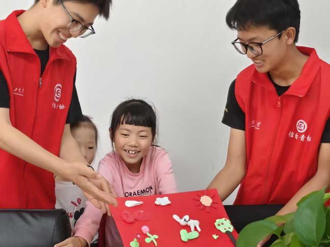 活动中,志愿者们带领孩子们观看创意动画视频,激发他们对艺术创作的兴趣。随后,志愿者耐心地为孩子们讲解创意制作的基本技巧和方法,鼓励他们大胆发挥想象,充分利用绘画工具和材料,进行绘画、泥塑和剪纸等多种形式的艺术创作,创作自己心中的美好世界。