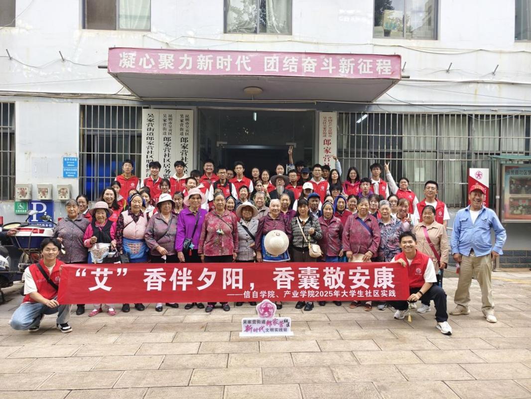 (人工智能产业学院)组织学院青年志愿者协会和学院“青马工程”青卓班学员,前往昆明市呈贡区郎家营社区开展以“‘艾’香伴夕阳,香囊敬安康”为主题的大学生社区实践活动。