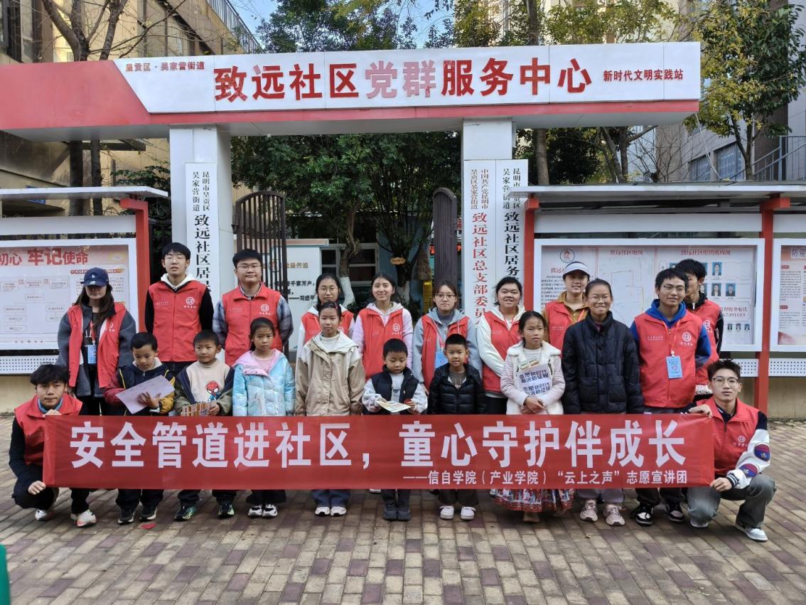 (人工智能产业学院)组织学院青年志愿者协会和学院“青马工程”青卓班学员前往昆明市呈贡区致远社区开展以"安全管道进社区,童心守护伴成长"为主题的大学生社区实践活动。